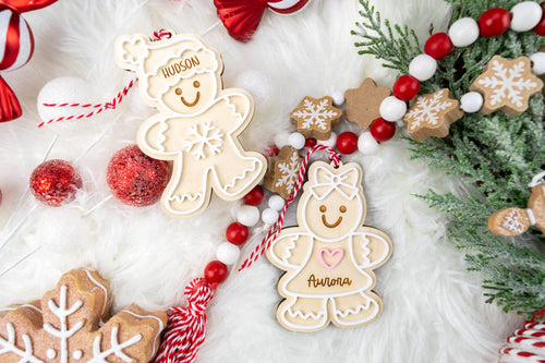 Personalized Wooden Gingerbread Ornament | Custom Name Ornament | Family Christmas Ornament for Kids