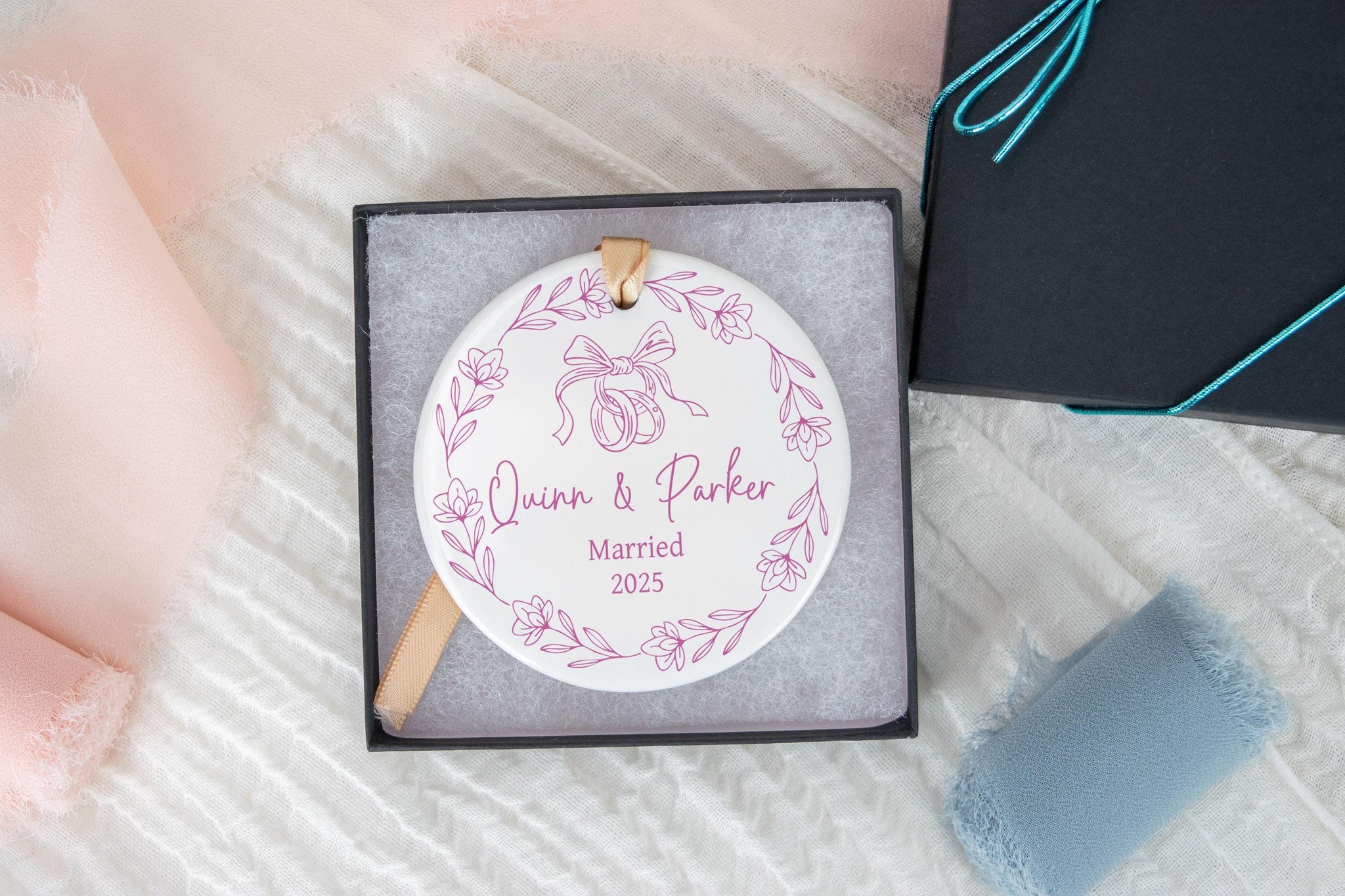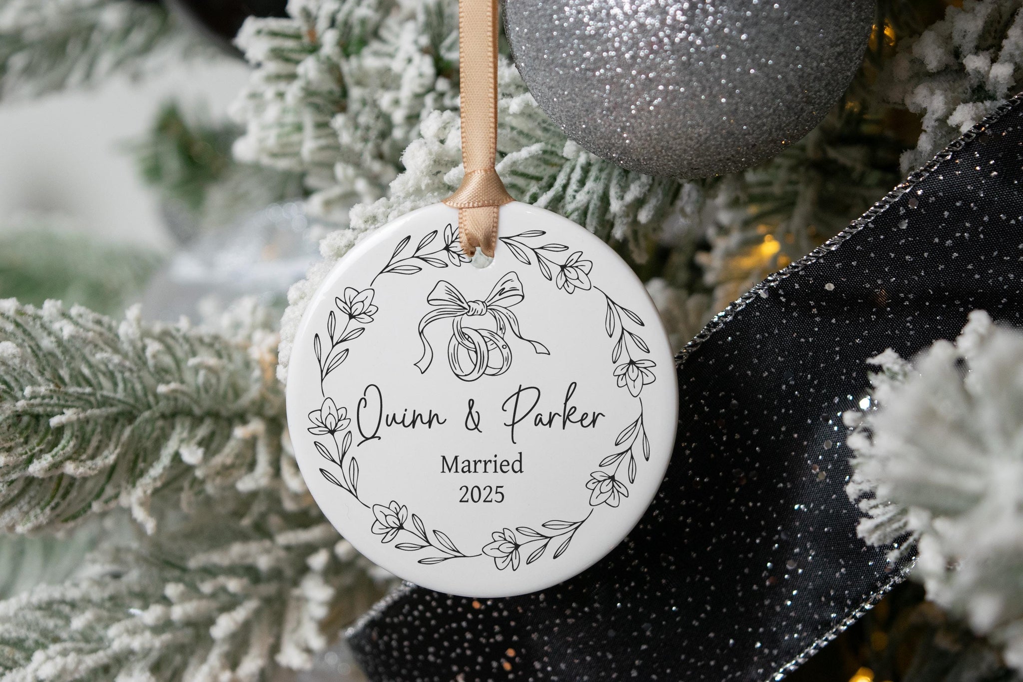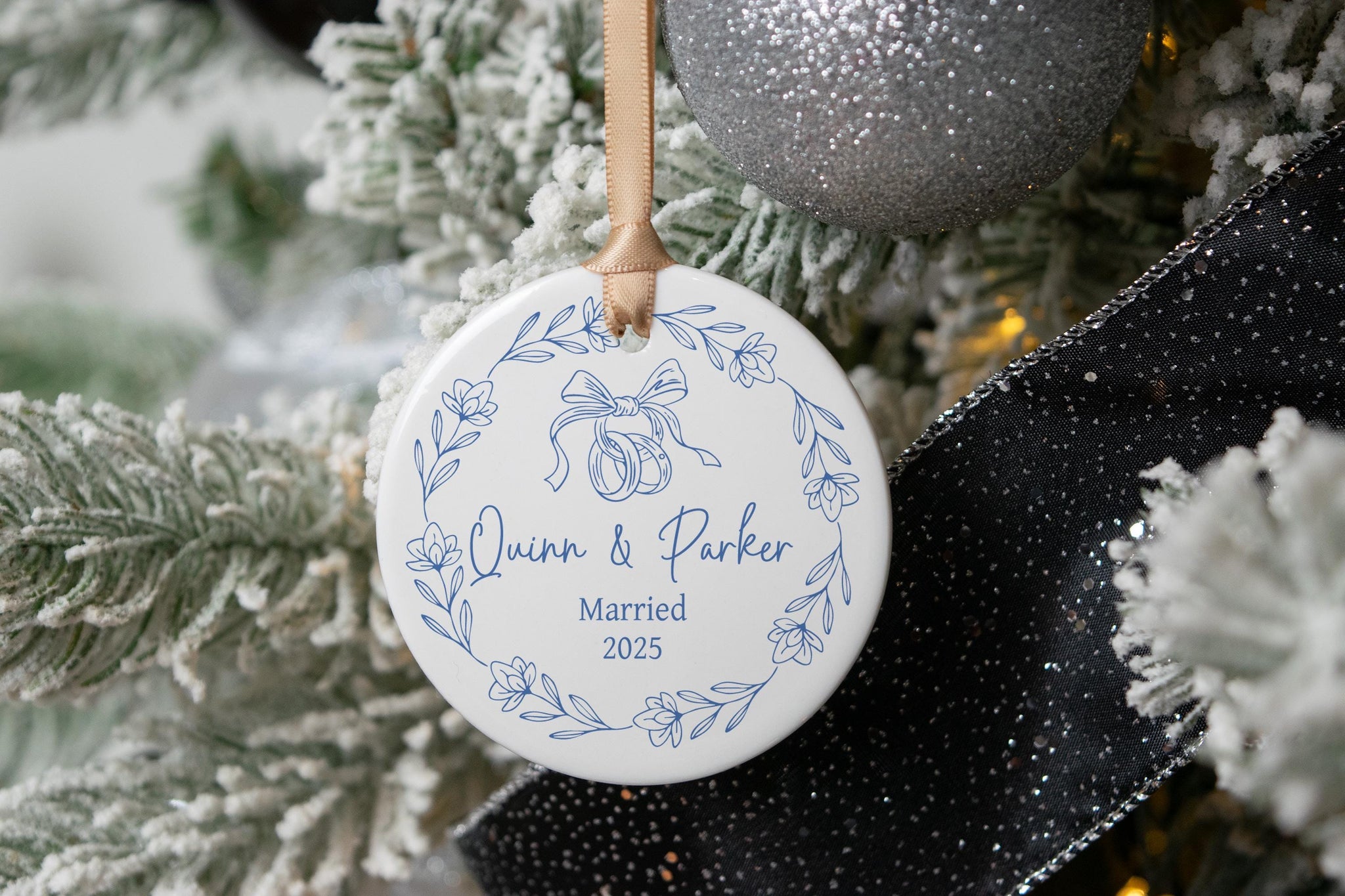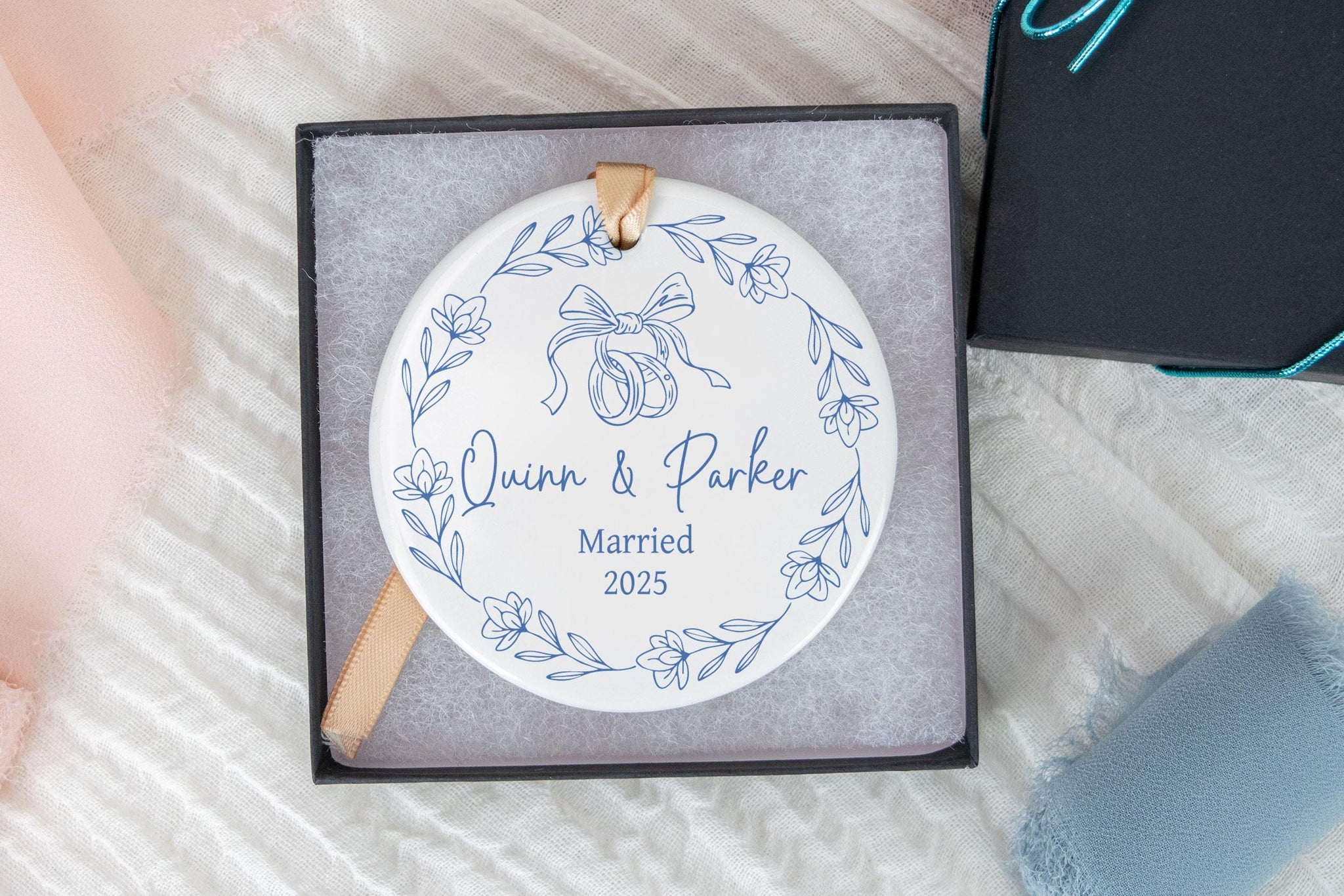 Celebrate your first Christmas as newlyweds with this Chinoiserie Inspired Married Ornament. A timeless keepsake that beautifully captures your wedding year.